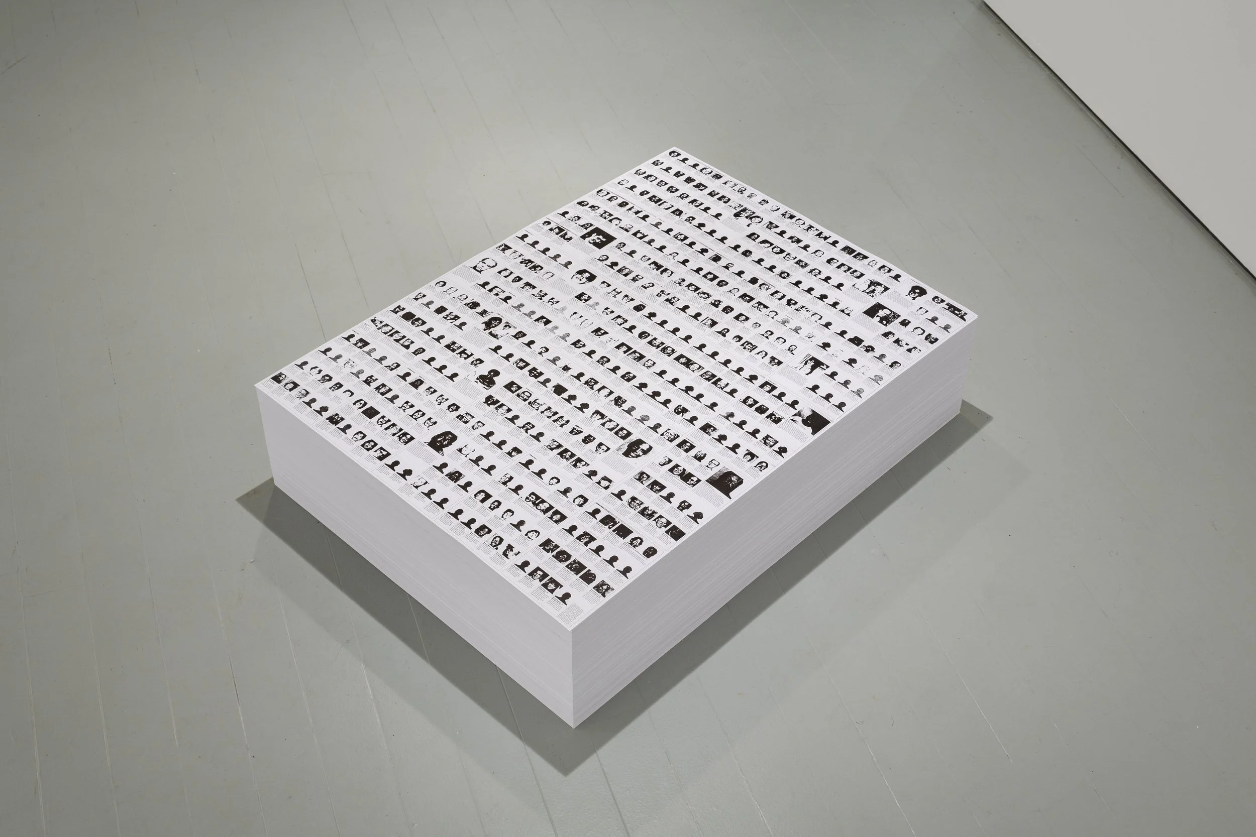 “Untitled” (Death by Gun), 1990, Print on paper, endless copies, Stack: 9” at ideal height x 44 15/16” x 32 15/16”, Courtesy of the Felix Gonzalez-Torres Foundation and the Museum of Modern Art, New York, photo: Nicholas Knight