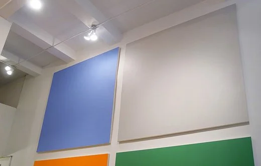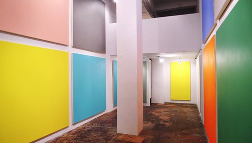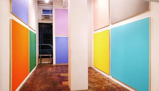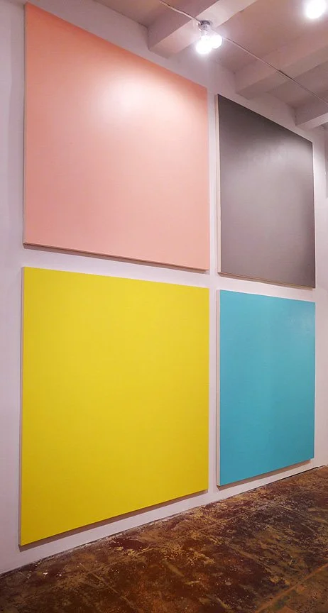 (top left to bottom right) Untitled (pink), Untitled (dark grey), Untitled (yellow), Untitled (turquoise)