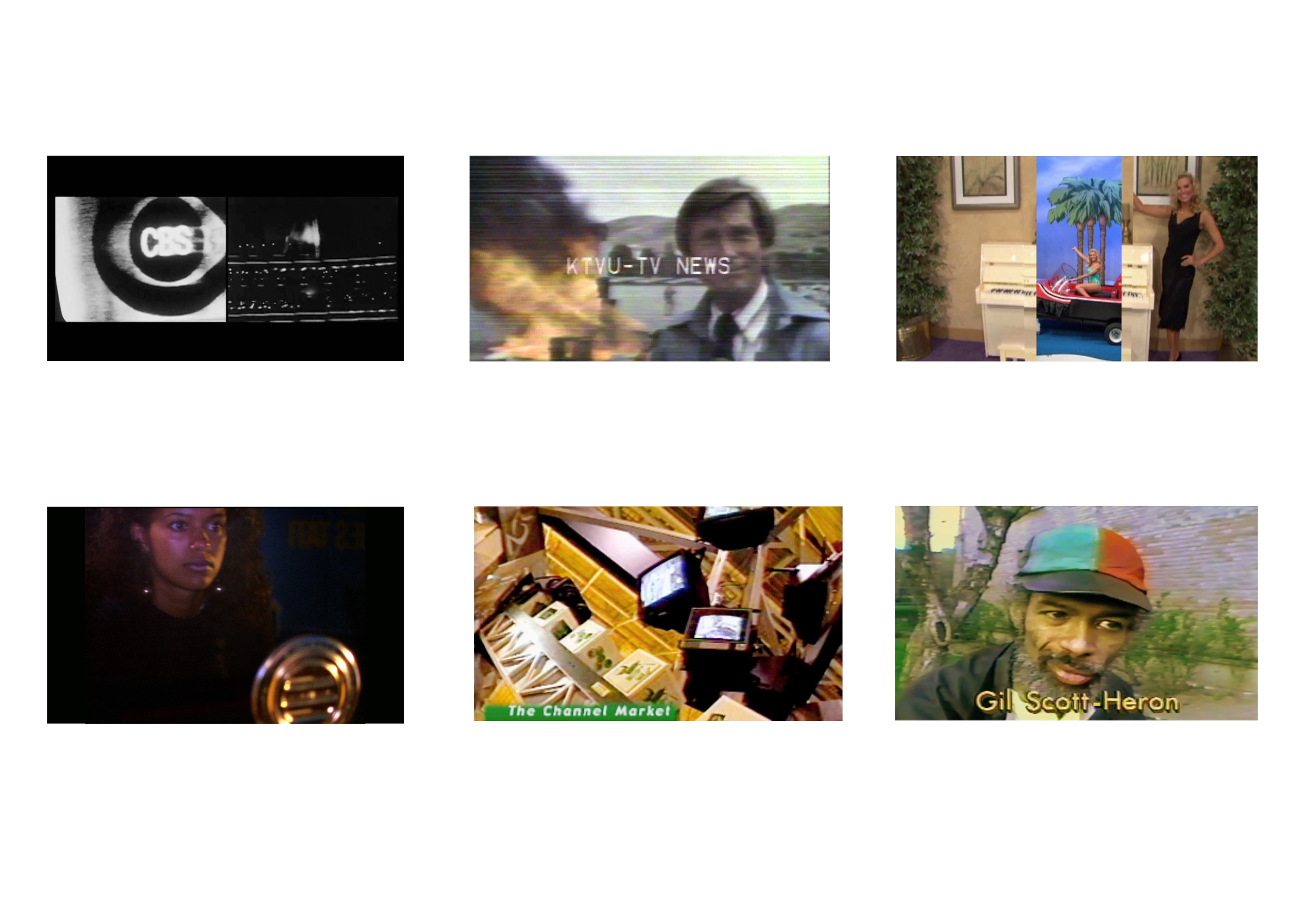 Bottom Row (left to right): Stan Douglas, Television Spots, 1987-1988, 5:18 min, color, sound, overall dimensions variable, Courtesy the artist, Victoria Miro, and David Zwirner, Skip Blumberg, The Channel Market, 1996, 5:58 min, color, sound, Courtesy of the artist, Skip Blumberg, Gil Scott-Heron: Why Revolution won’t be Televised, 1991, 1:17 min, color, sound, Courtesy of the artist