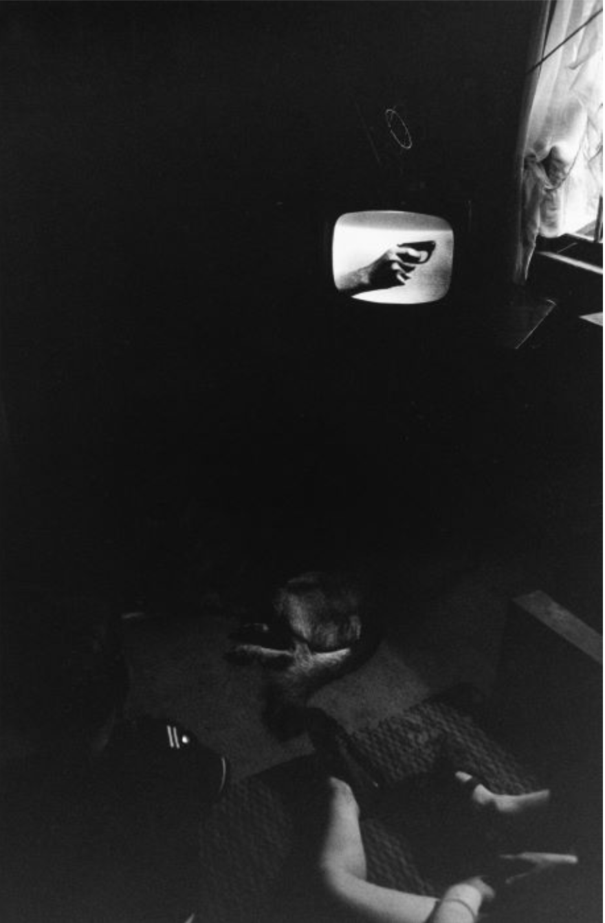 Installation Detail Media Burn, 1975, photograph, matte vinyl, Image courtesy of Inventory Press & Chip Lord.
