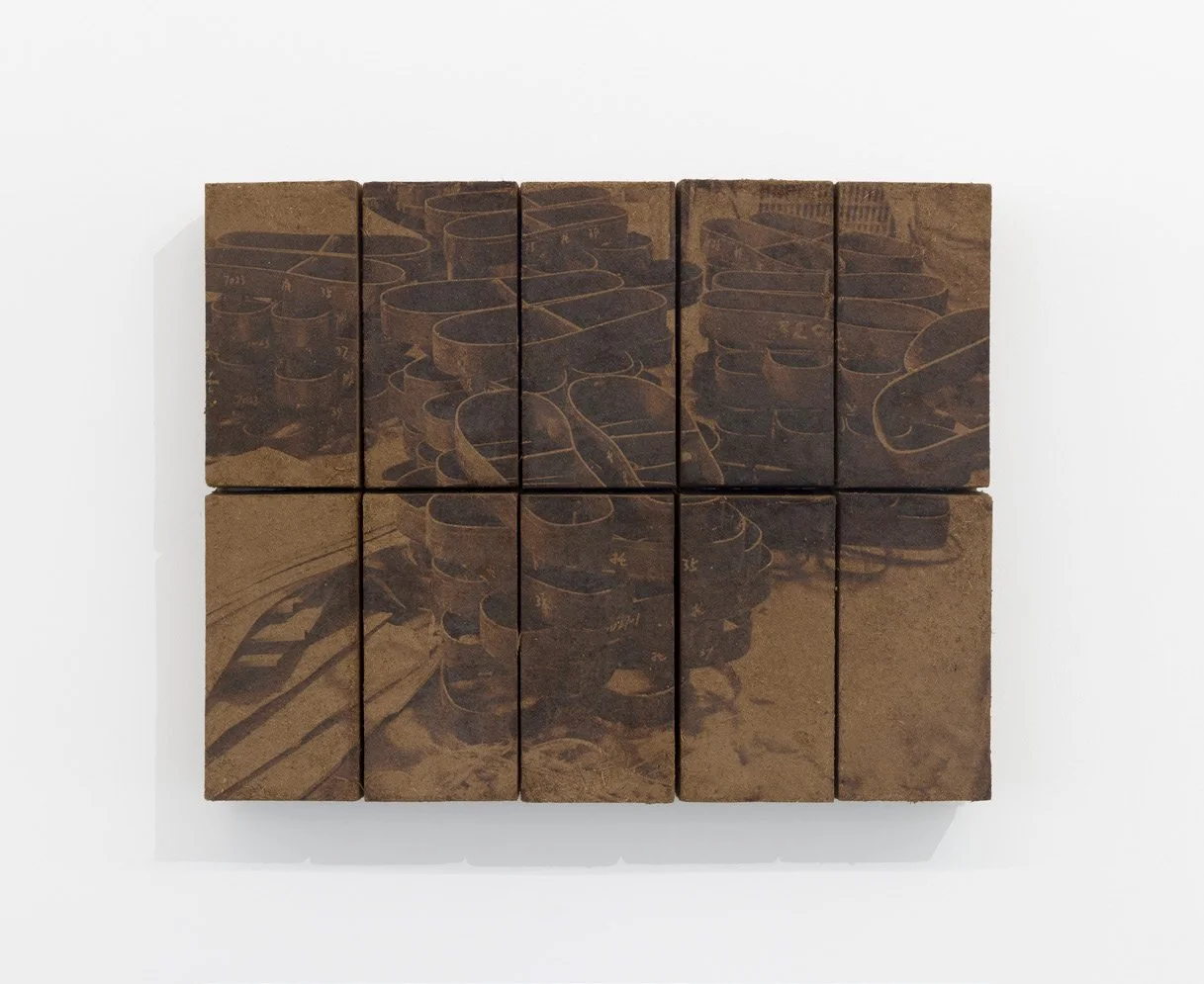 Yiyao Tang, compressing, expanding #11, 2024, Ink on coconut coir bricks (mounted on aluminum composite panel and plywood), 32.7” x 24.6” x 2.8” (83 x 62.5 x 7 cm.) Ed. of 3, 1 AP. Courtesy of the artist. Photo: Nicholas Knight.