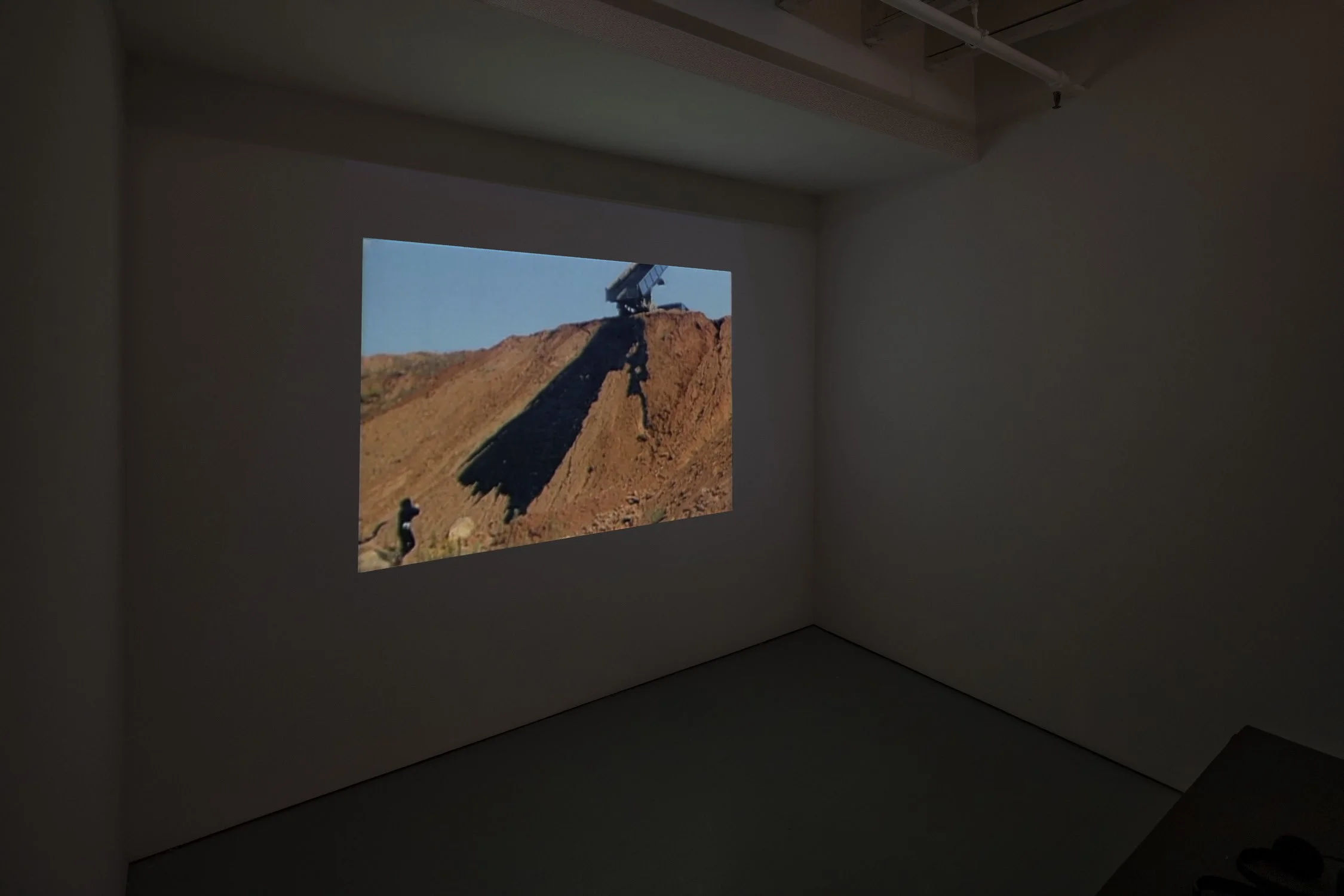 Installation View, Nancy Holt and Robert Smithson, Swamp, 1971, 6:00 min, color, sound. Courtesy of the artists & Electronic Arts Intermix (EAI). Rich Land, Poor Land, Carriage Trade, Photo: Nicholas Knight.