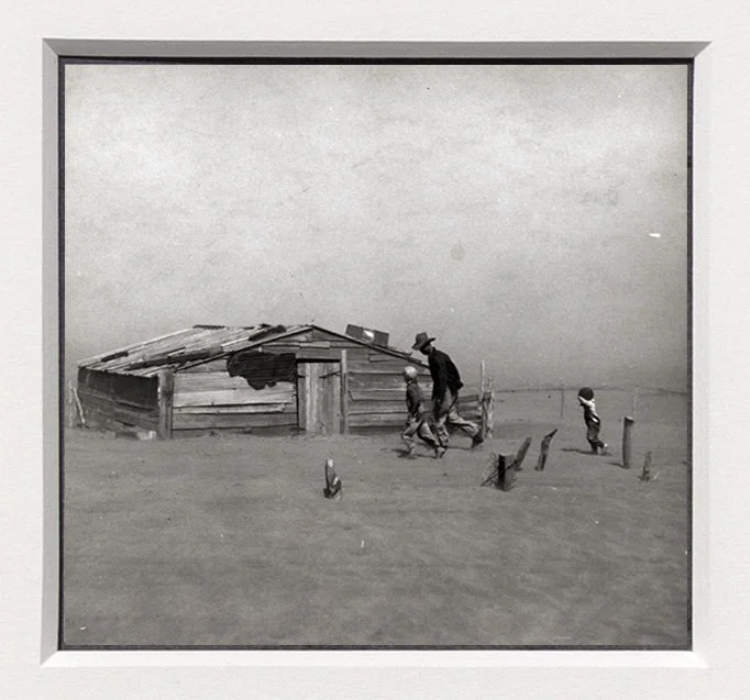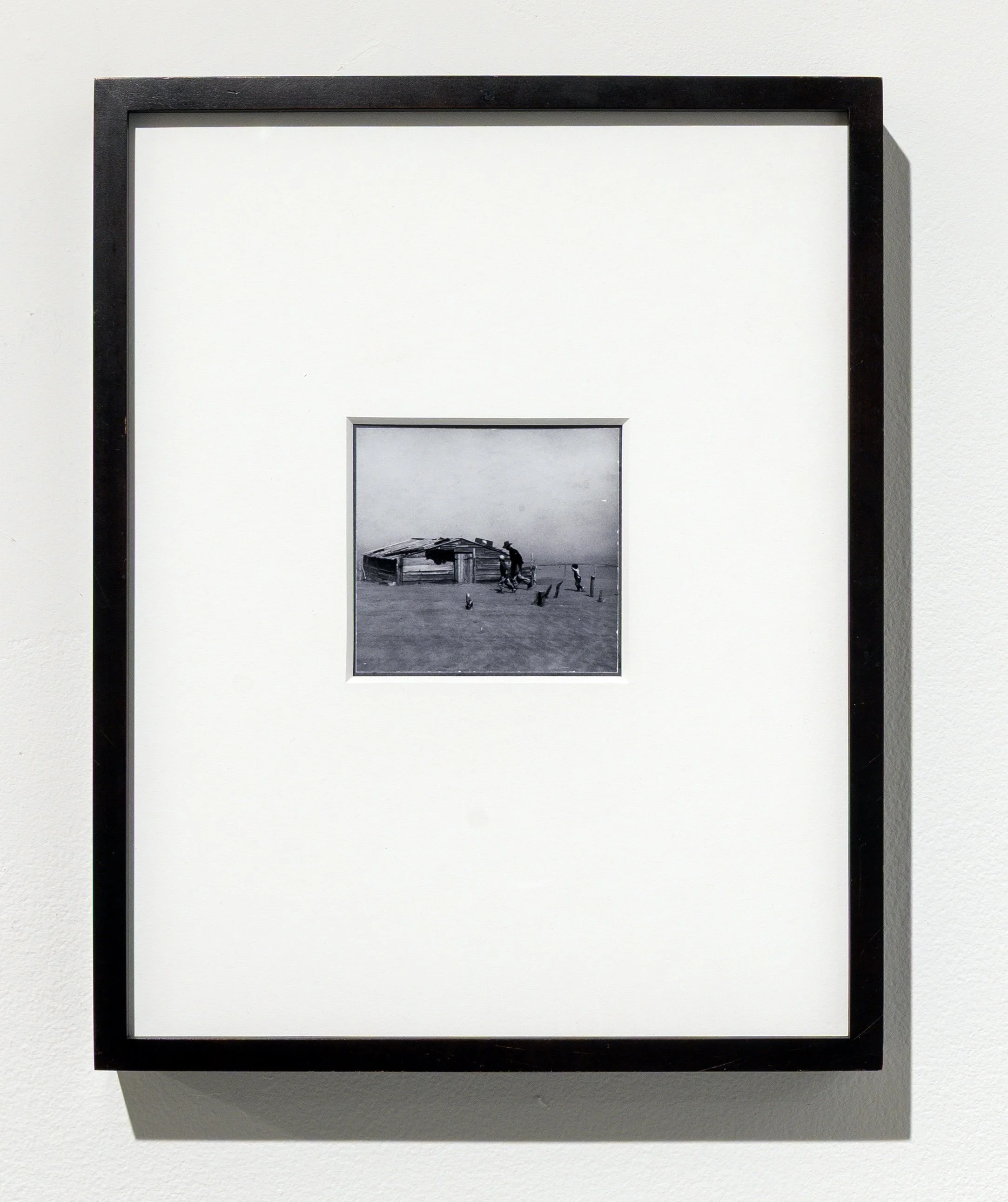 Arthur Rothstein, Farmer and sons walking in the face of a dust storm. Cimarron County, Oklahoma, 1936, Inkjet print, 3 3/4” x 4” (9.5 x 10.2 cm.), framed 14” x 11” (35.6 x 27.9 cm.) Courtesy of The Library of Congress. Photo: Nicholas Knight
