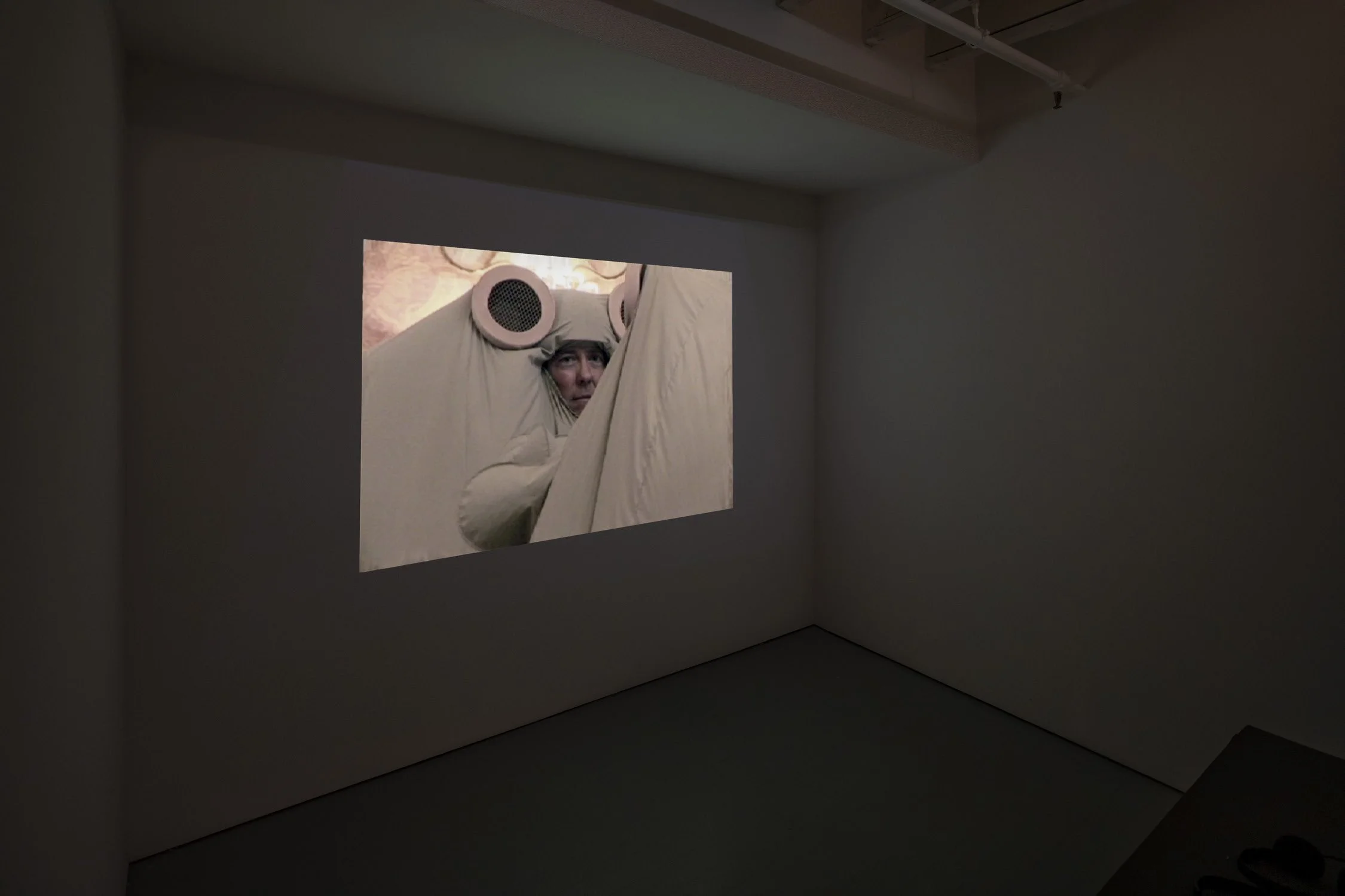 Installation View, The Yes Men, Survivaballs, 2015, 4:30 min, color, sound. Courtesy of the artists. Rich Land, Poor Land, Carriage Trade, Photo: Nicholas Knight.