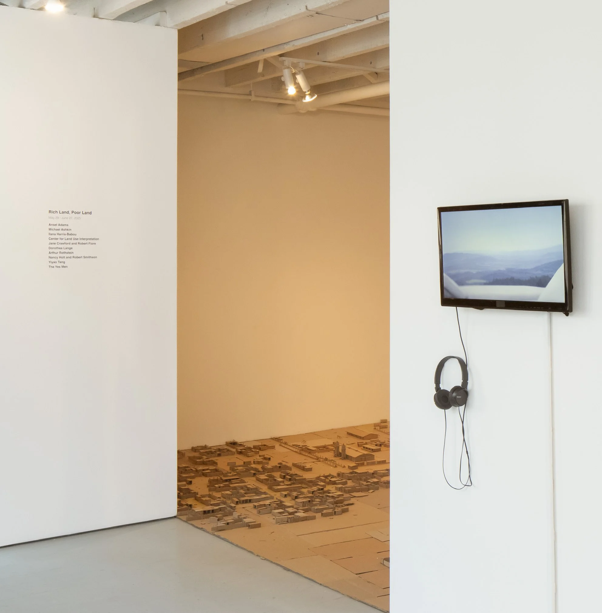 Focusing on the politics of landscape and land use, this exhibition takes as its reference point Stuart Chases' 1936 land use study Rich Land, Poor Land, a Study of Waste in the Natural Resources of America. Written not long after the environmental devastation of the Dust Bowl, Rich Land, Poor Land argues for a respect for natural processes and resources, which are often ignored at society's peril. Updating these concerns to our contemporary moment, the exhibition will explore connections between landscape as symbolic of bounty for the many, contrasted with the often brutal expropriation of its resources and occupants on behalf of the few.