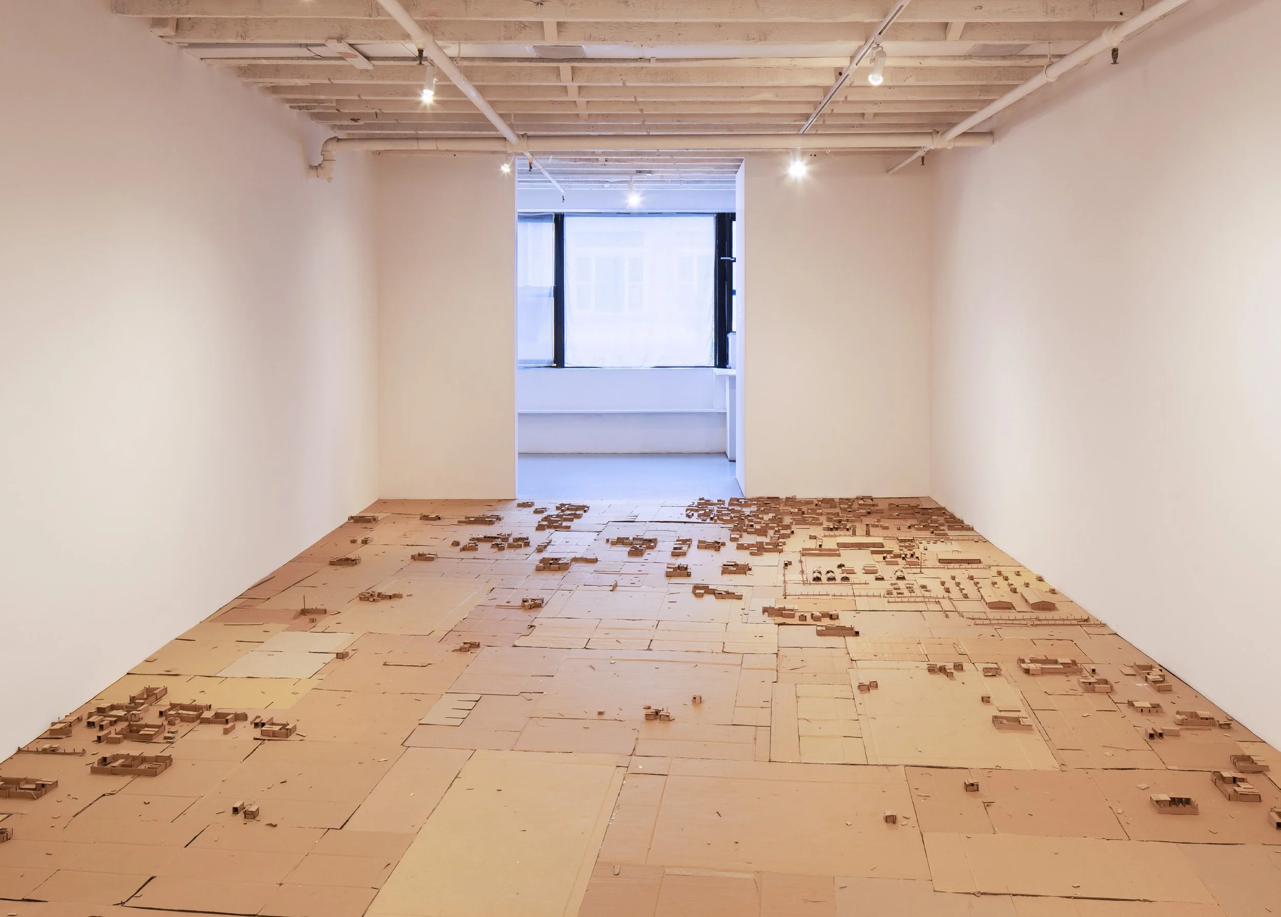 Michael Ashkin, where hiding places are many, escape only one, 2009-2025, recycled cardboard with glue, dimensions variable. Courtesy of the artist. Rich Land, Poor Land, Carriage Trade, Photo: Nicholas Knight.