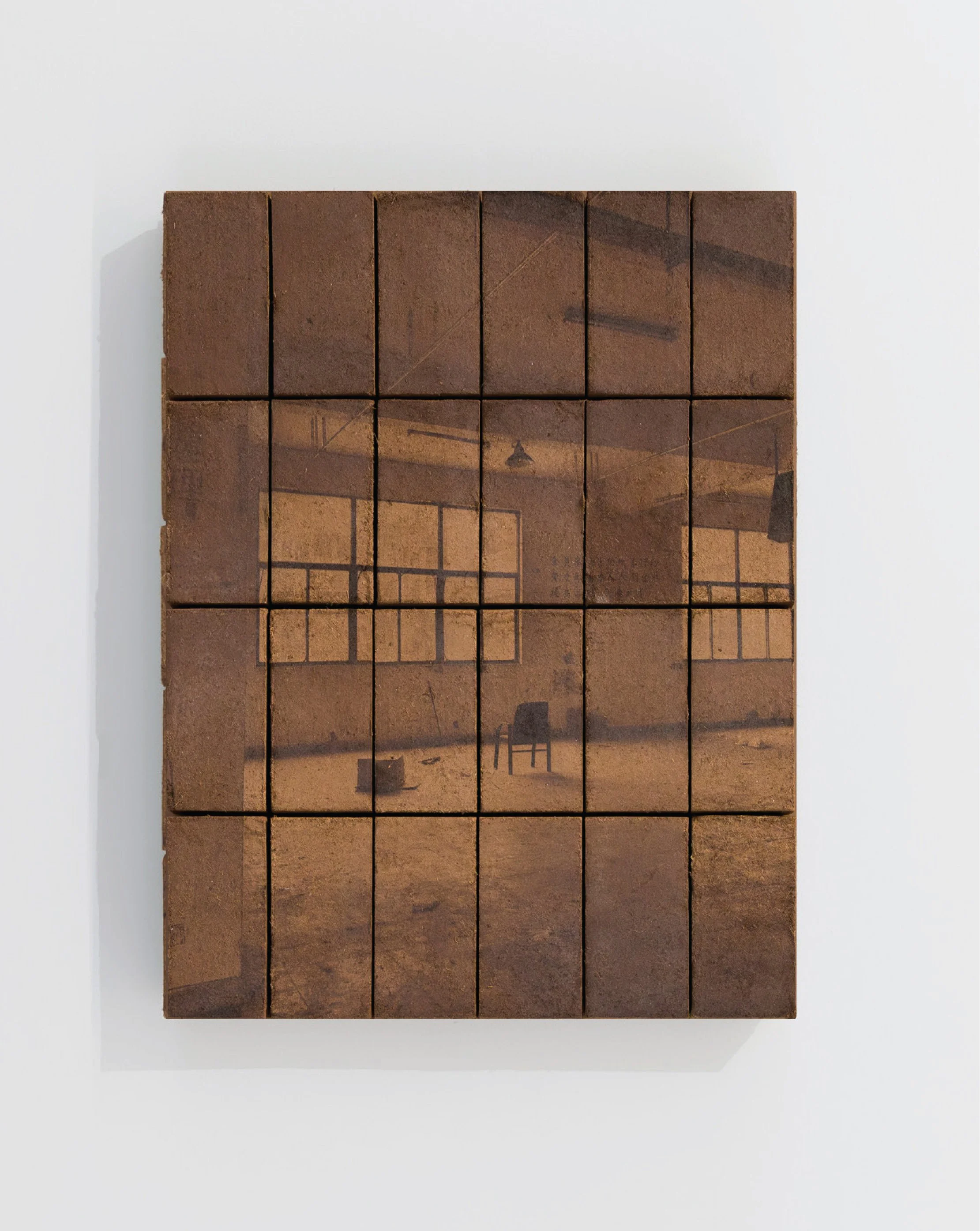 Yiyao Tang, compressing, expanding #17, 2024, Ink on coconut coir bricks (mounted on aluminum composite panel and plywood), 16.3” x 20.4” x 2.8” (41.5 x 51.7 x 7 cm.) Ed. of 3, 1 AP. Courtesy of the artist. Photo: Nicholas Knight.