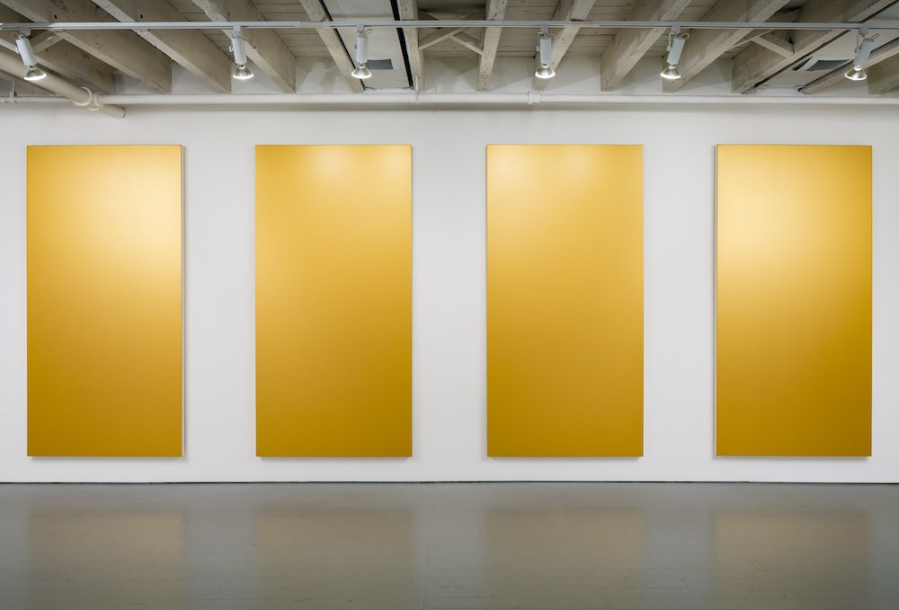 Untitled (Gold) #1-4, 2018, Acrylic on canvas, 84" x 42" (213 x 106.7 cm). photo: Nicholas Knight