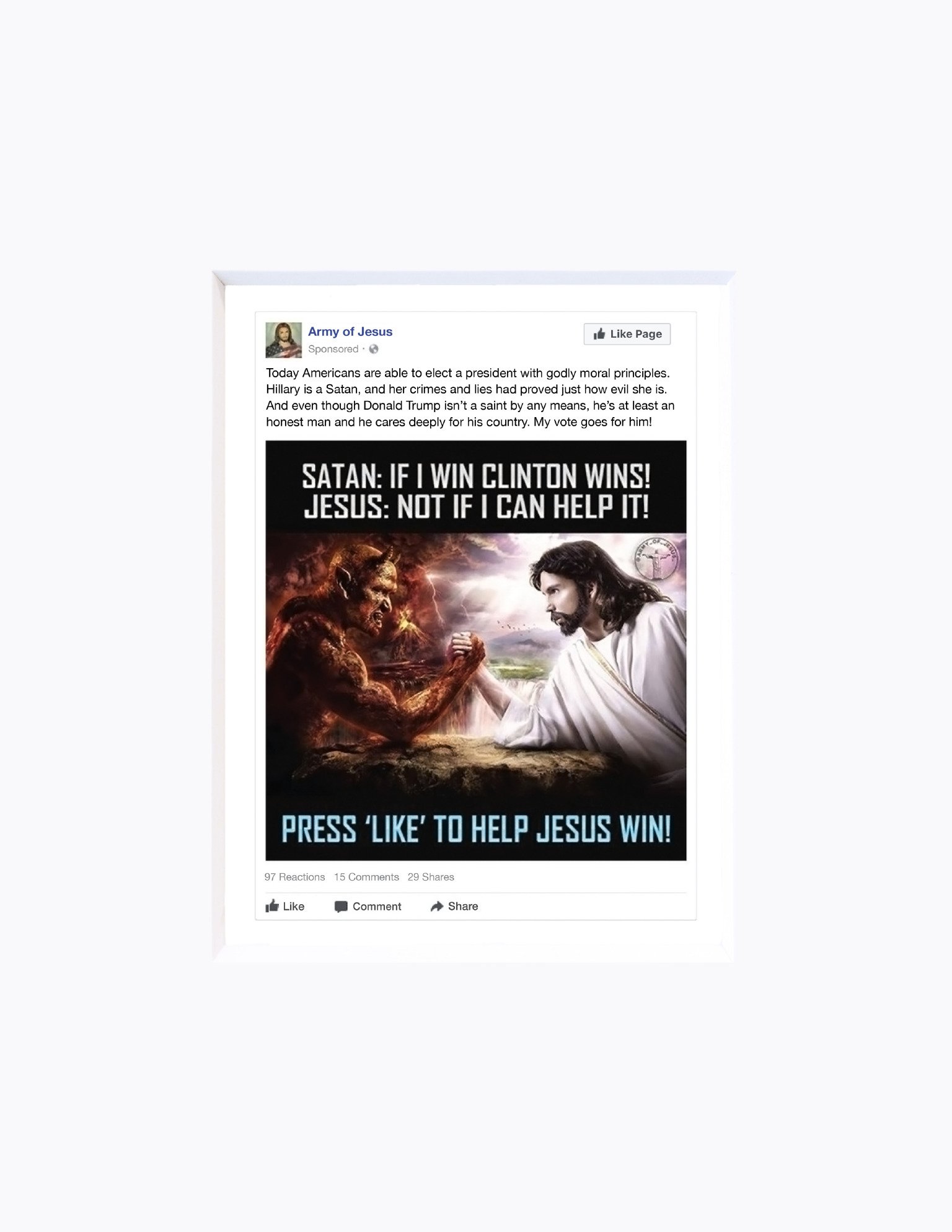 Russian Facebook Ad 2016, #4, 2018, 14" x 11", (35.6 x 28 cm) (framed), image size: 5 1/4" x 3 7/8" (13.3 x 9.8 cm)