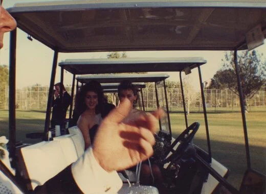 Untitled (hand obstructing view of women in a golf cart), c. 1980s, color snapshot, Courtesy of A. & D. Winter